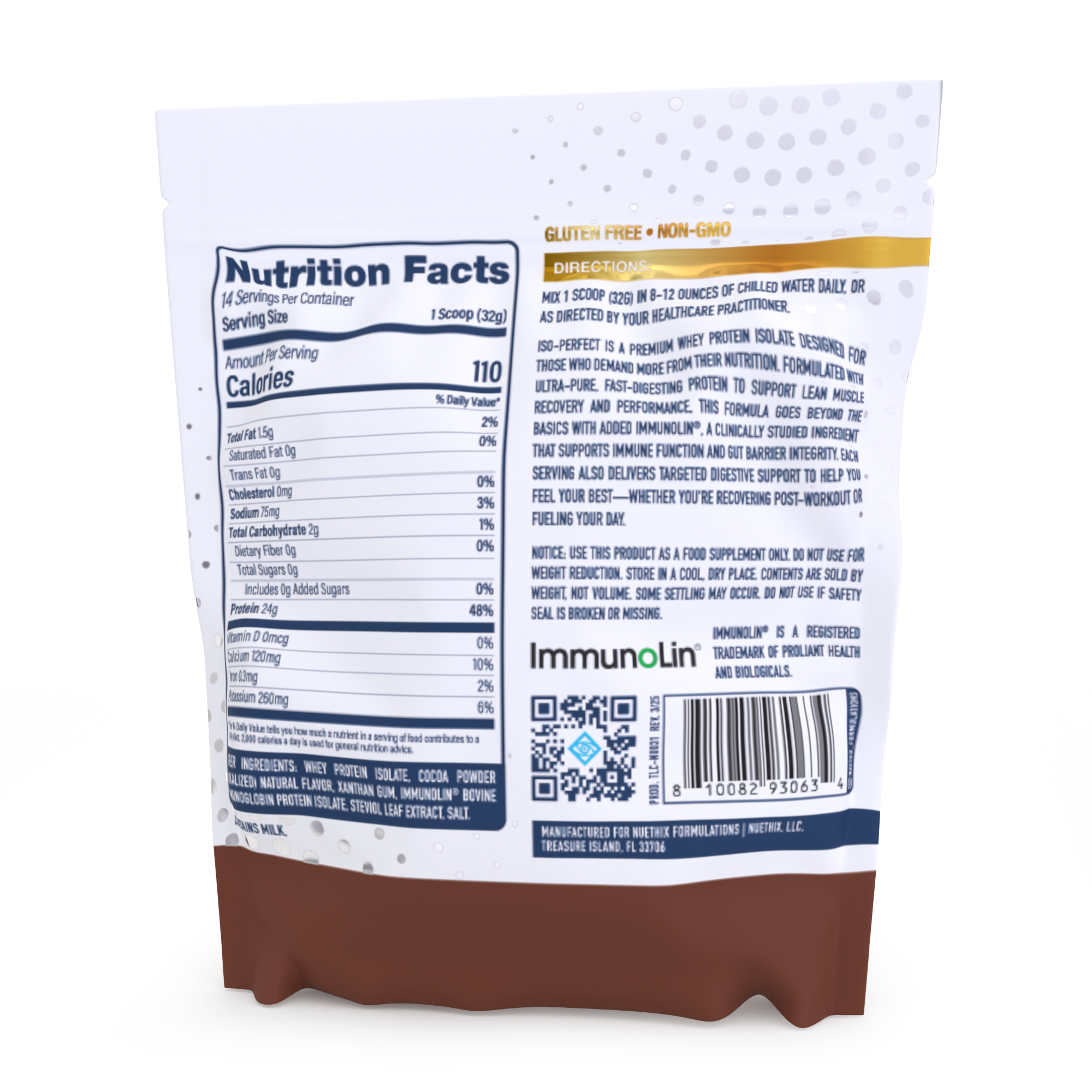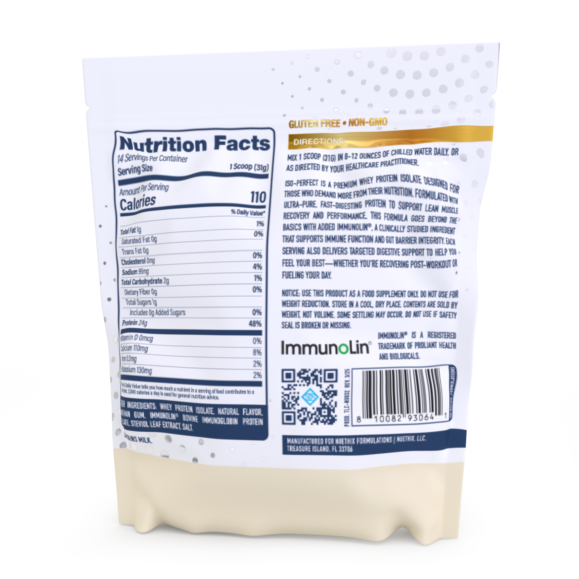 NuEthix ISO-Perfect is a fast-digesting whey protein isolate designed for anyone who wants a clean, easy-on-the-stomach protein that actually works. Each scoop delivers 24 grams of ultra-pure protein with just 110 calories, low fat, and zero added sugars—perfect for fueling recovery, supporting lean muscle, or getting more protein into your day without the bloat.