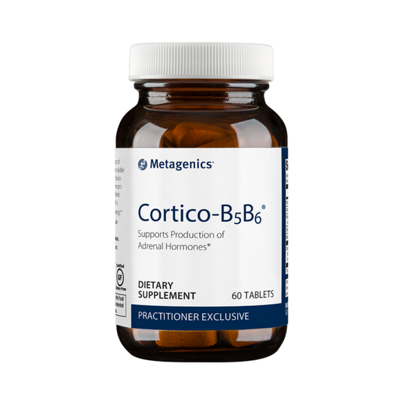 Cortico-B5B6® provides significant amounts of pantothenic acid and vitamin B6—water-soluble B vitamins that are important for many physiological functions such as adrenal hormone production and energy metabolism. Pantothenic acid is converted into coenzyme A, which is necessary for the body’s production of energy.