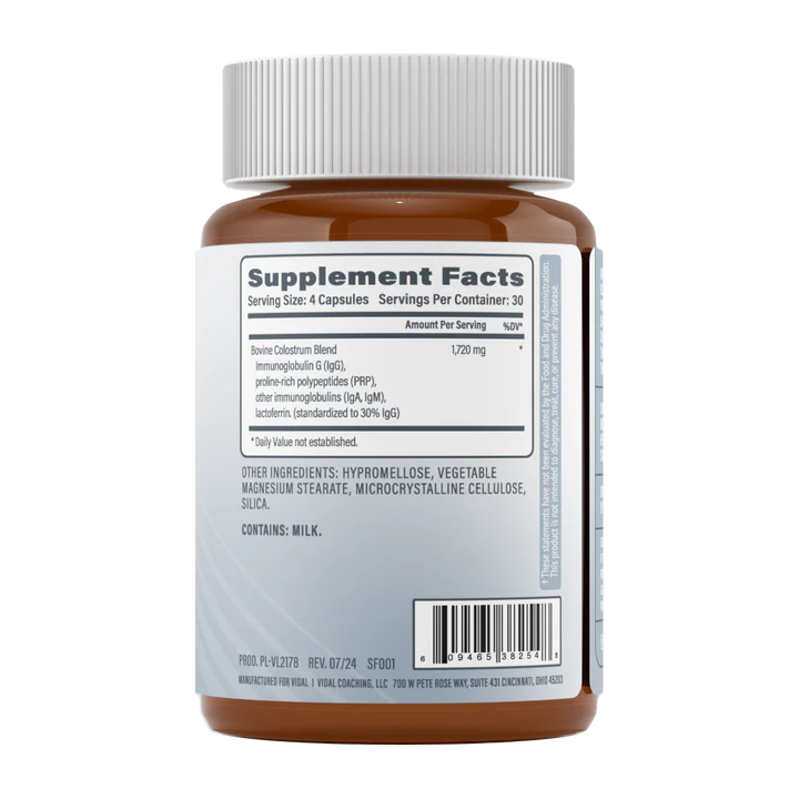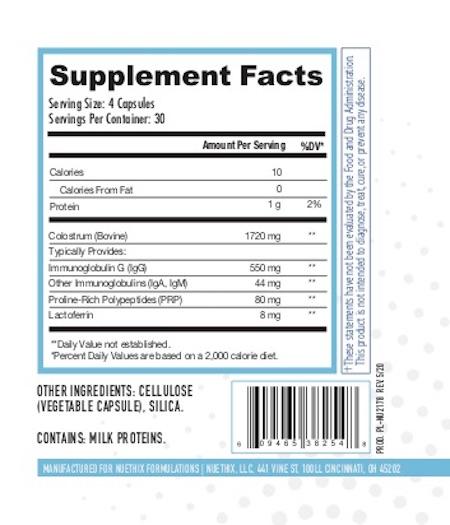 Mucosa Repair contains pure bovine colostrum which is rich in immunoglobulins, especially IgG, as well as IgA and IgM. Bovine colostrum contains 40 times more immune-related components than human milk. In addition to these immune system enhancers, bovine colostrum contains viable cells, such as neutrophils and macrophages, which secrete special proteins that support your immune system; these proteins include cytokines, lactoferrin, and proline-rich polypeptides (PRP).Below are some of the most pertinent researched-backed benefits derived from Immune PRP Pro: